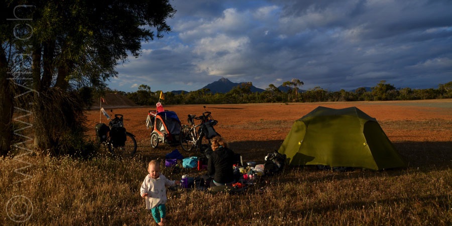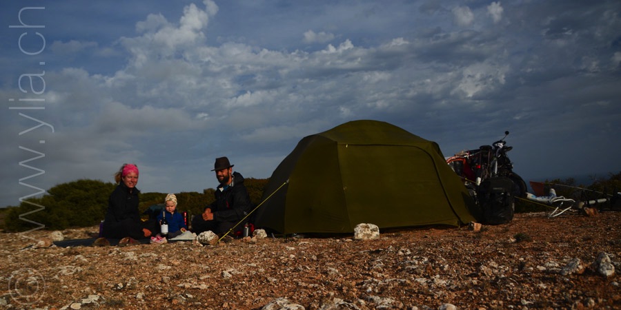 The harshness of your world, the aggressiveness of the flies, the intensity of the sun, your redoubtable wind impose us the necessity to live here and now. Creating shade with a mosquito net between our bikes, carrying up to 7 days of food and 60 liters of water, we are immersed in full autonomy in the middle of your desert of 1'200km, the plaine of Nuallarbor.